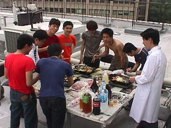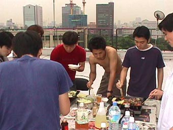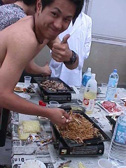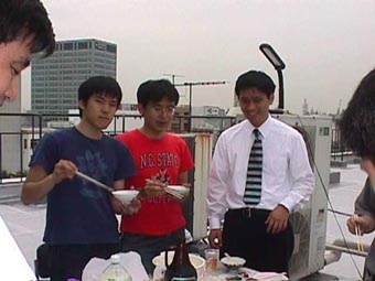 その検証実験大会PART2 1999.6.23 17:00〜 屋上にて バーベキュー大会第2弾 ちょっと風が強いけど,みんな楽しそう ハイ,チーズ これは授業ではありません おいしいなー 火力伝搬実験中!? ヤキソバ1 ヤキソバ2 ヤキソバ3 で,できたー!!