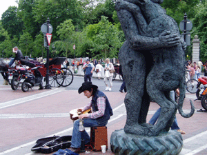 ![]() ウサギと動物(ネコ科)が抱きつく けったいな像の前にいたミュージシャン☆ |