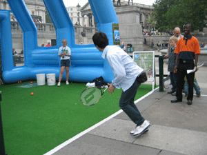 ![]() 広場でウィンブルドンの催し物がやってました 挑戦してみたものの・・・ |