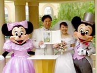 - 林 俊光さん(96S97M99F)が真紀子さん(旧姓 重田)とミッキーたちの祝福の中,ディズニーリゾートの