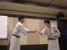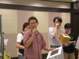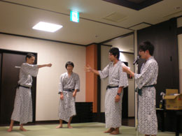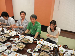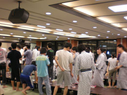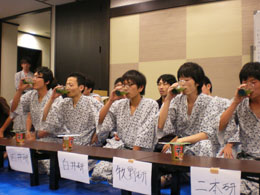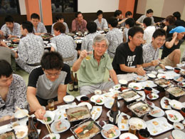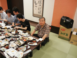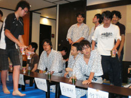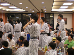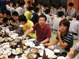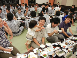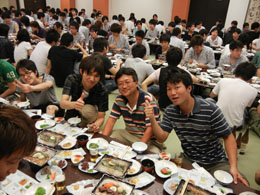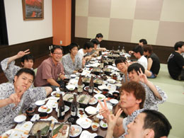 | 各研究室が一同に会しての大晩餐会.今年から就任なさった先生方も多く,心機一転の顔ぶれとなりました. | ||||