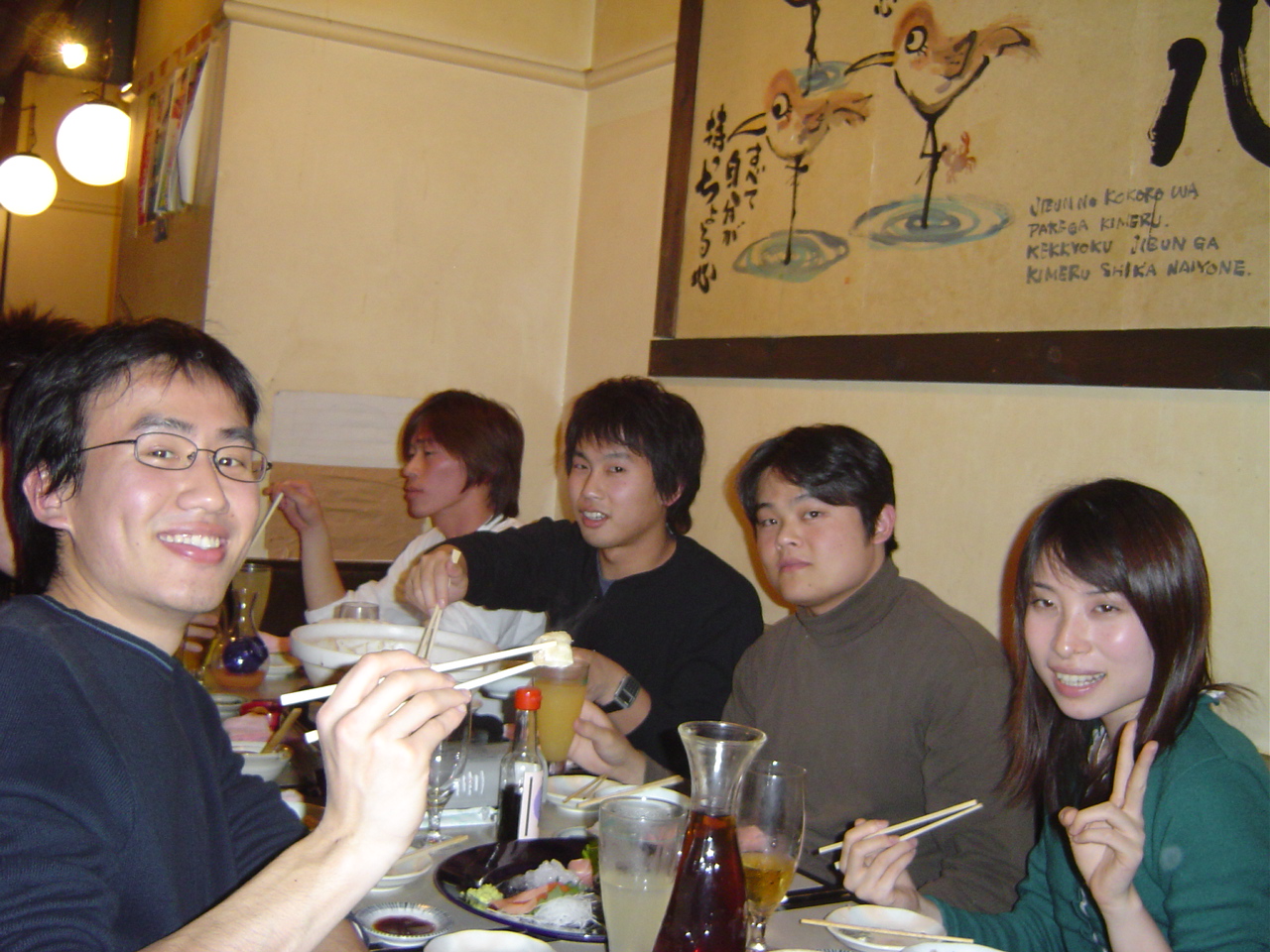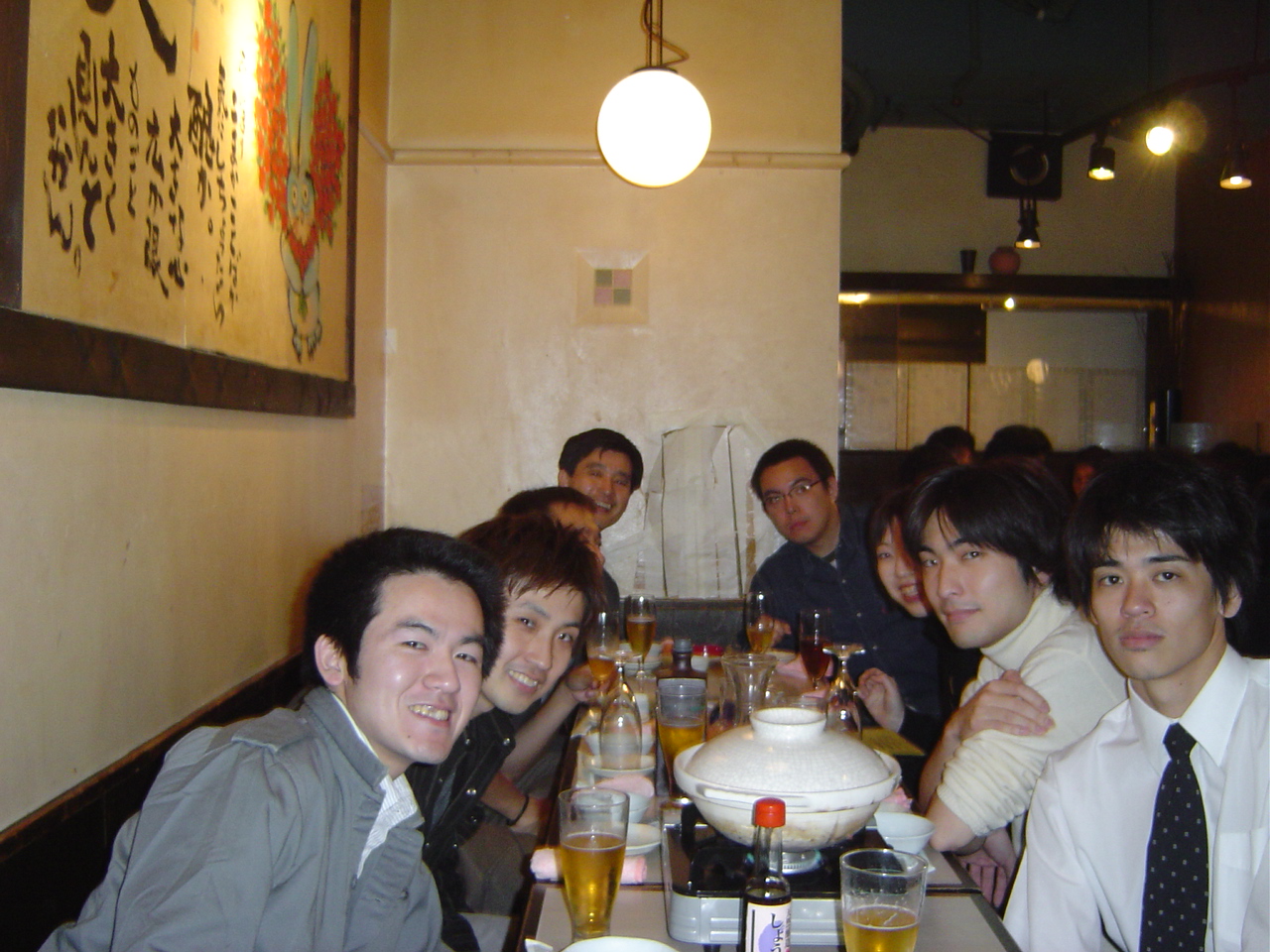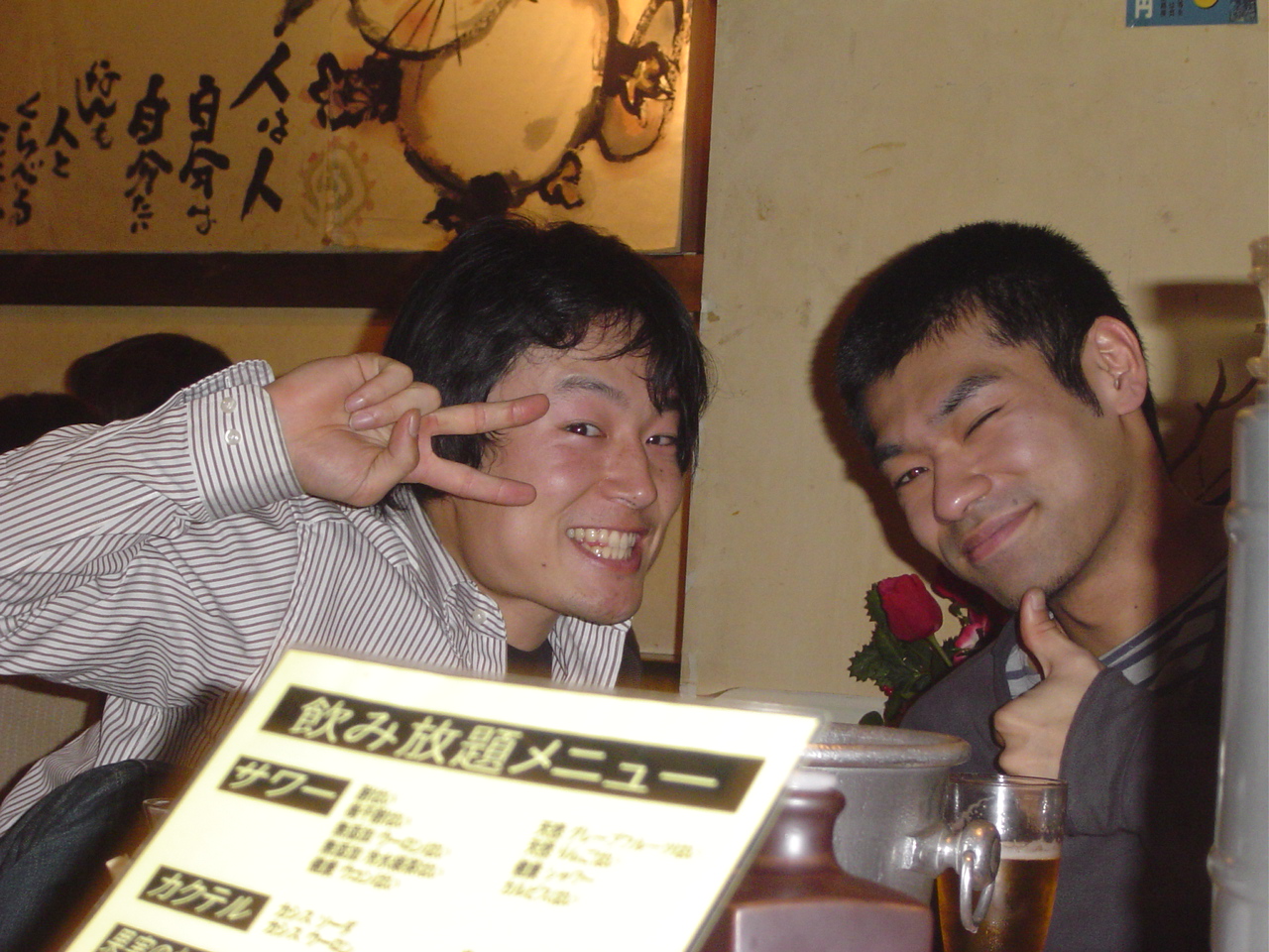 2004年12月18日(土)、新宿で白井研究室忘年会が行われました。 参加者はOB・OGの方々を含め約40人! OB・OGの皆様、お忙しい中ご参加頂きありがとうございました。 忘年会の様子を載せておきましたので、是非ご覧ください。 白井先生と愉快な教え子達 乾杯☆ 皆さん,まだ酔っ払う前です♪ ハイ,チーズ! 神:けんちゃん‥写ってるよww 幹事です。 ここは撮影禁止です! 翔ちゃんの舌に注目☆ プリンス・今野氏☆ 男の横顔を見よ デコボココンビ もう一人の幹事さん☆ 飲んでるかい?笑 イケメンズ! ちゃっかりカメラ目線(J) 照れるNちゃん☆ 真中・・・終わったなw ピンボケでごめんなさい! ナイスなスマイル! 先生もご満悦♪ 僕・・幸せです!笑 私,こうゆう者です..よろしく 神ちゃん,なんでへこんでるの? 二次会のカラオケ突入! 問題のツーショット!? 見てください!このマイクの角度を!! いいですね〜癒されそうです! たのしぃ〜!☆ 酔った勢いとはいえ・・衝撃のスクープ映像です ダぁー!!! この部屋はすさまじかったです・・ ノリノリー!♪ どんだけノリがいいんだよっ!笑 熱唱するカミさま ちょいと休憩中 満面の笑みのカミさま おーい,誰か俺の歌声を聞いてくれYO! 照れてるんじゃないよ〜ケンちゃん♪ B4トリオ☆ M2のM下さんの横顔が素敵です! ちょっと疲れた顔になってきましたねーw 振り付けで歌うカミさま 目までつぶっちゃうのかYO!気持ちよさそ〜 選曲中ー♪ デュエット中 まったりした雰囲気です とある風景 アップはダメだって ノリノリ義範♪ 満足しましたぁ☆★ 熱く語る小柳津さん OB代表小野でーす! 遠ちゃん,こっち向いてよぉ〜 ツーショット@ ツーショットA 写しちゃダメぇ げっへっへっへ ふぅ〜、一休み 何かを企む示沢さん 小清水さん,旅立つ 痛ぃ… 目がとろ〜りしてますよ! 松下さん,ハーレムっすね 白木さん,暴走…小柳津さんもたじたじ コッシーそろそろガソリン切れ?! 日:さっさと出ろよ! 最後に熱唱! おしまい 白井研のホームページに戻る