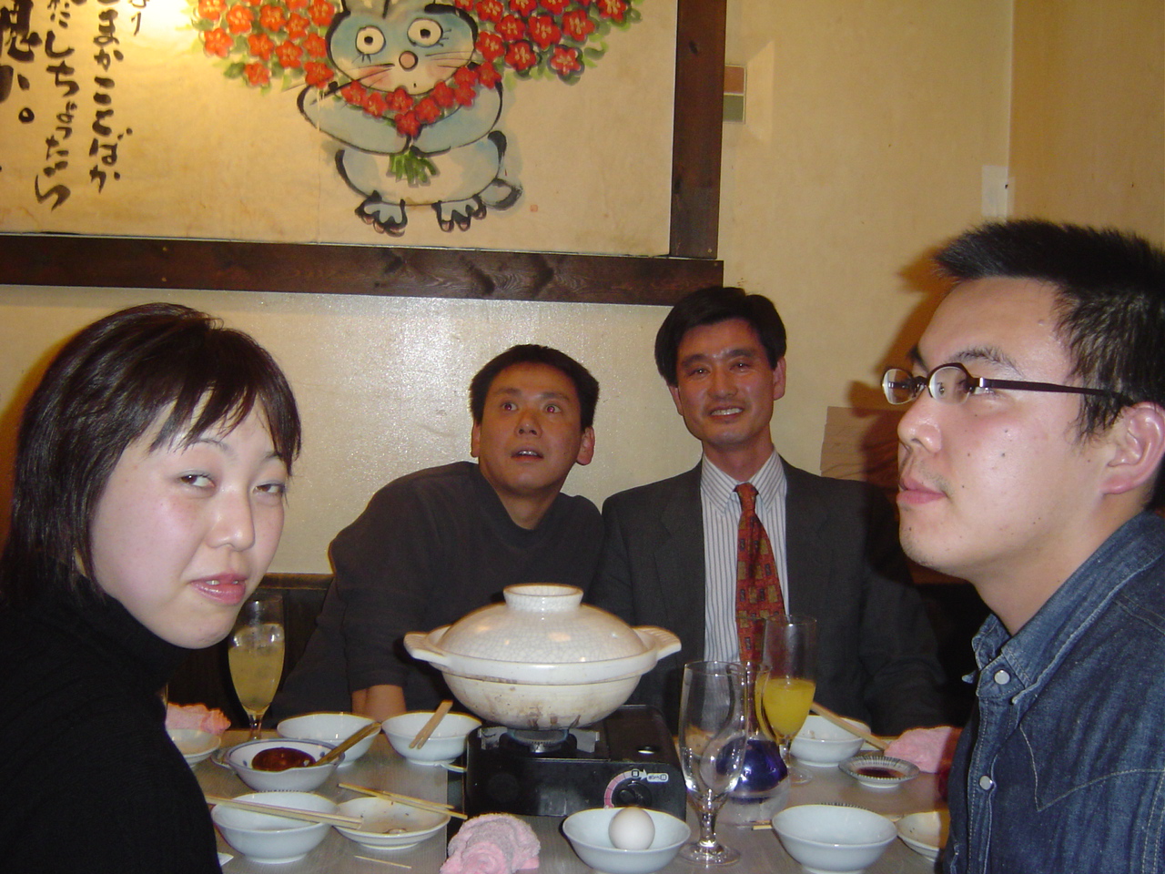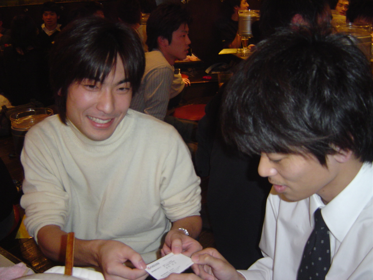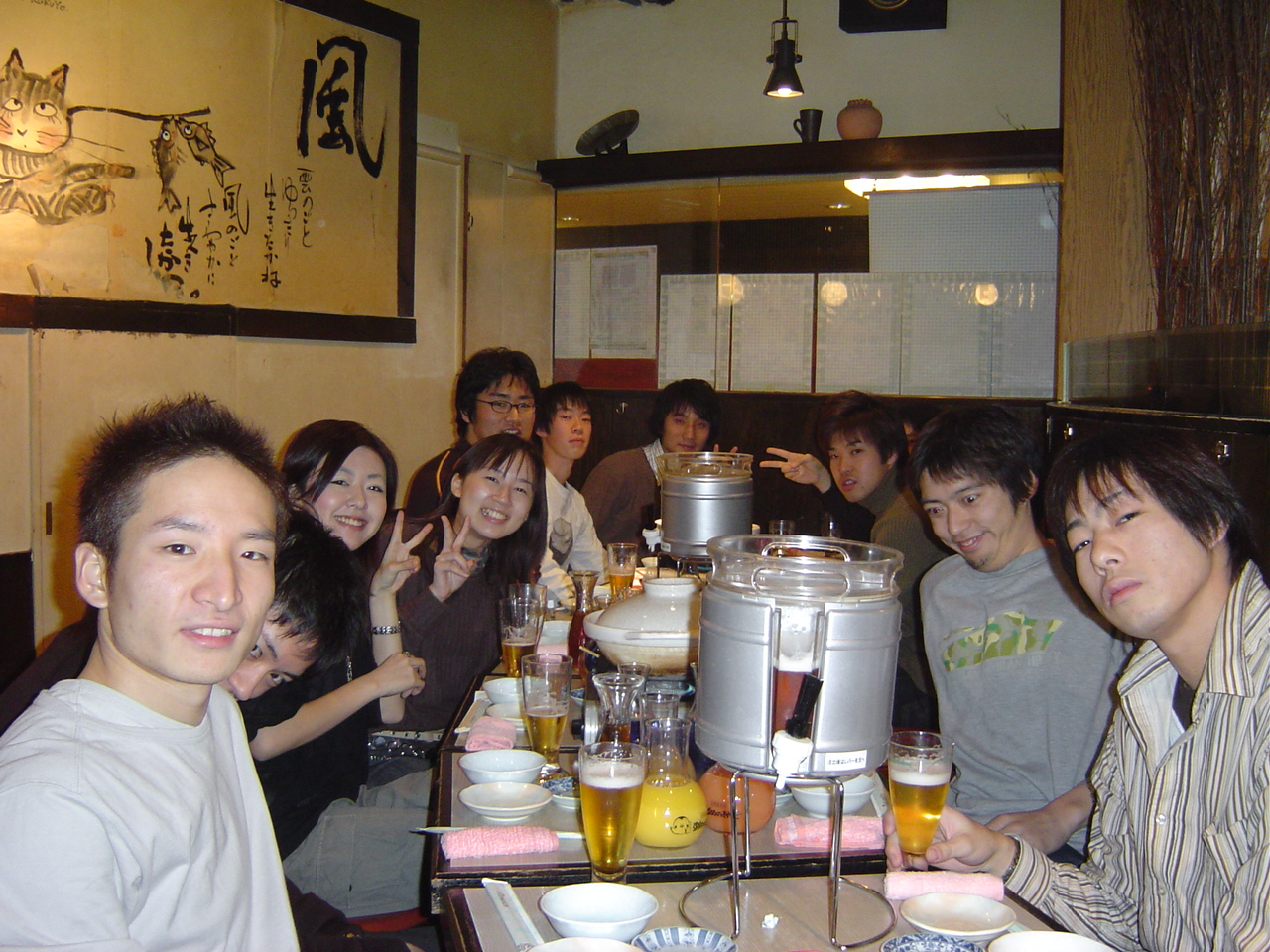 2004年12月18日(土)、新宿で白井研究室忘年会が行われました。 参加者はOB・OGの方々を含め約40人! OB・OGの皆様、お忙しい中ご参加頂きありがとうございました。 忘年会の様子を載せておきましたので、是非ご覧ください。 白井先生と愉快な教え子達 乾杯☆ 皆さん,まだ酔っ払う前です♪ ハイ,チーズ! 神:けんちゃん‥写ってるよww 幹事です。 ここは撮影禁止です! 翔ちゃんの舌に注目☆ プリンス・今野氏☆ 男の横顔を見よ デコボココンビ もう一人の幹事さん☆ 飲んでるかい?笑 イケメンズ! ちゃっかりカメラ目線(J) 照れるNちゃん☆ 真中・・・終わったなw ピンボケでごめんなさい! ナイスなスマイル! 先生もご満悦♪ 僕・・幸せです!笑 私,こうゆう者です..よろしく 神ちゃん,なんでへこんでるの? 二次会のカラオケ突入! 問題のツーショット!? 見てください!このマイクの角度を!! いいですね〜癒されそうです! たのしぃ〜!☆ 酔った勢いとはいえ・・衝撃のスクープ映像です ダぁー!!! この部屋はすさまじかったです・・ ノリノリー!♪ どんだけノリがいいんだよっ!笑 熱唱するカミさま ちょいと休憩中 満面の笑みのカミさま おーい,誰か俺の歌声を聞いてくれYO! 照れてるんじゃないよ〜ケンちゃん♪ B4トリオ☆ M2のM下さんの横顔が素敵です! ちょっと疲れた顔になってきましたねーw 振り付けで歌うカミさま 目までつぶっちゃうのかYO!気持ちよさそ〜 選曲中ー♪ デュエット中 まったりした雰囲気です とある風景 アップはダメだって ノリノリ義範♪ 満足しましたぁ☆★ 熱く語る小柳津さん OB代表小野でーす! 遠ちゃん,こっち向いてよぉ〜 ツーショット@ ツーショットA 写しちゃダメぇ げっへっへっへ ふぅ〜、一休み 何かを企む示沢さん 小清水さん,旅立つ 痛ぃ… 目がとろ〜りしてますよ! 松下さん,ハーレムっすね 白木さん,暴走…小柳津さんもたじたじ コッシーそろそろガソリン切れ?! 日:さっさと出ろよ! 最後に熱唱! おしまい 白井研のホームページに戻る